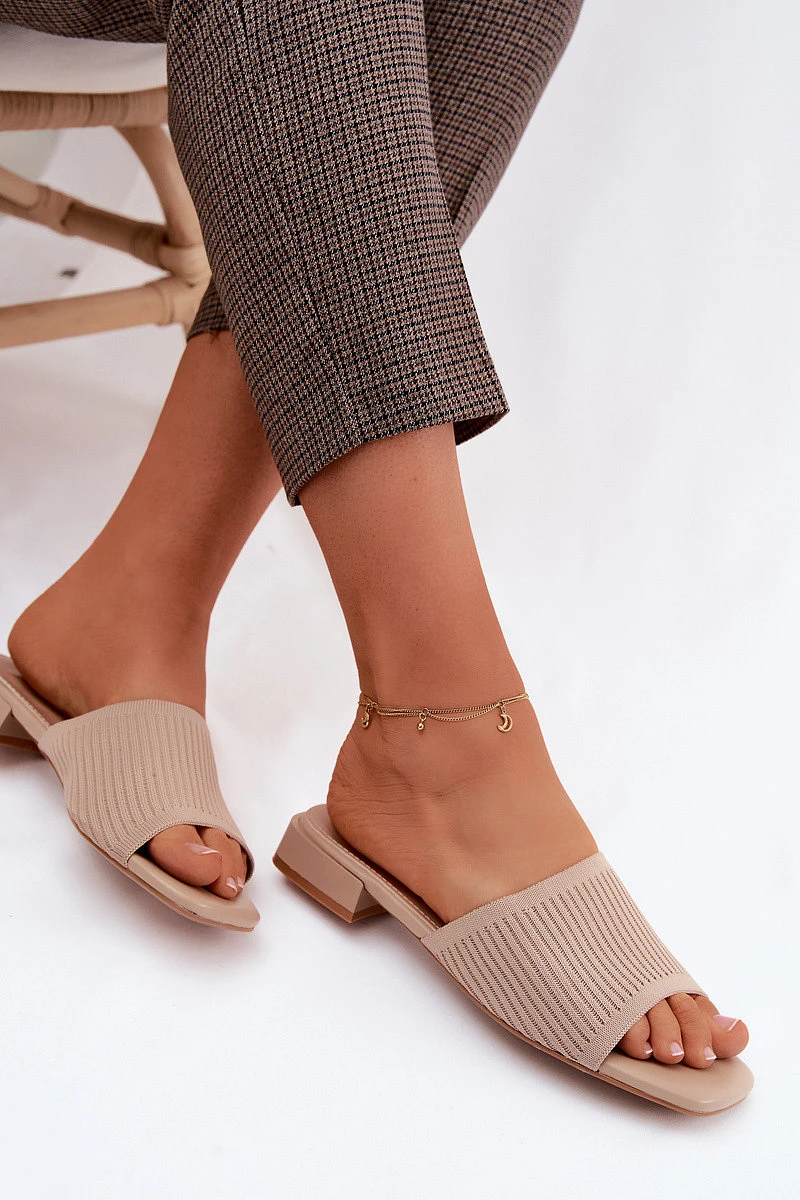 Materiálové dámské pantofle na plochém podpatku tmavě béžové Belissea