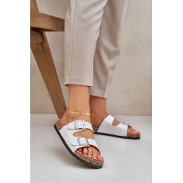 Materiálové pantofle na korkové podrážce s přezkami světle šedé Atera