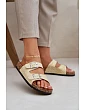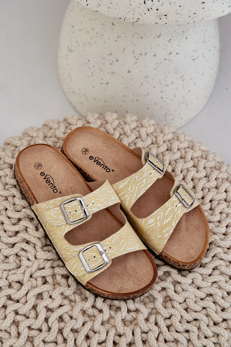 Materiálové pantofle na korkové podrážce s přezkami žluté Atera