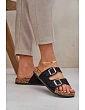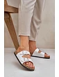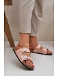 Dámské pantofle vyrobené z textilního materiálu jsou skvělou volbou na teplé dny. Dvě pásky s přezkami zajišťují snadné přizpůsobení k noze, zatímco korková podrážka dodává lehkost a módní charakter. Profilovaná vložka zaručuje pohodlí po celý den, což tyto pantofle činí ideální volbou na procházky nebo letní výlety. Pohodlí a styl v jednom! Při výběru velikosti se řiďte tabulkou velikostí.