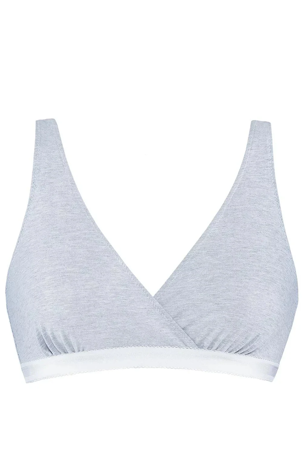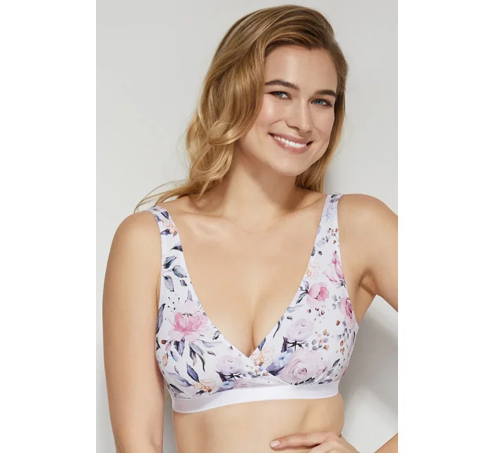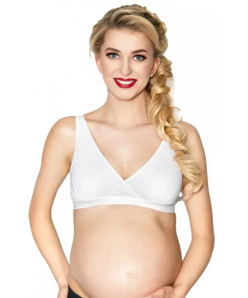 Funkční a pohodlná podprsenka pro kojící matky. Měkké, bezešvé košíčky, jemně zmačkané, bez kostic, ideálně se přizpůsobují tvaru poprsí. Zadní část se zapínáním na háčky, s třístupňovou regulací obvodu.