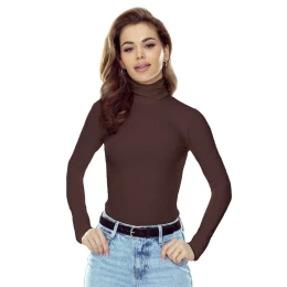 Přiléhavá halenka s dlouhými rukávy a rolákem, který netlačí, vyrobená z žebrovaného úpletu (široká žebra), který dokonale přiléhá k tělu
