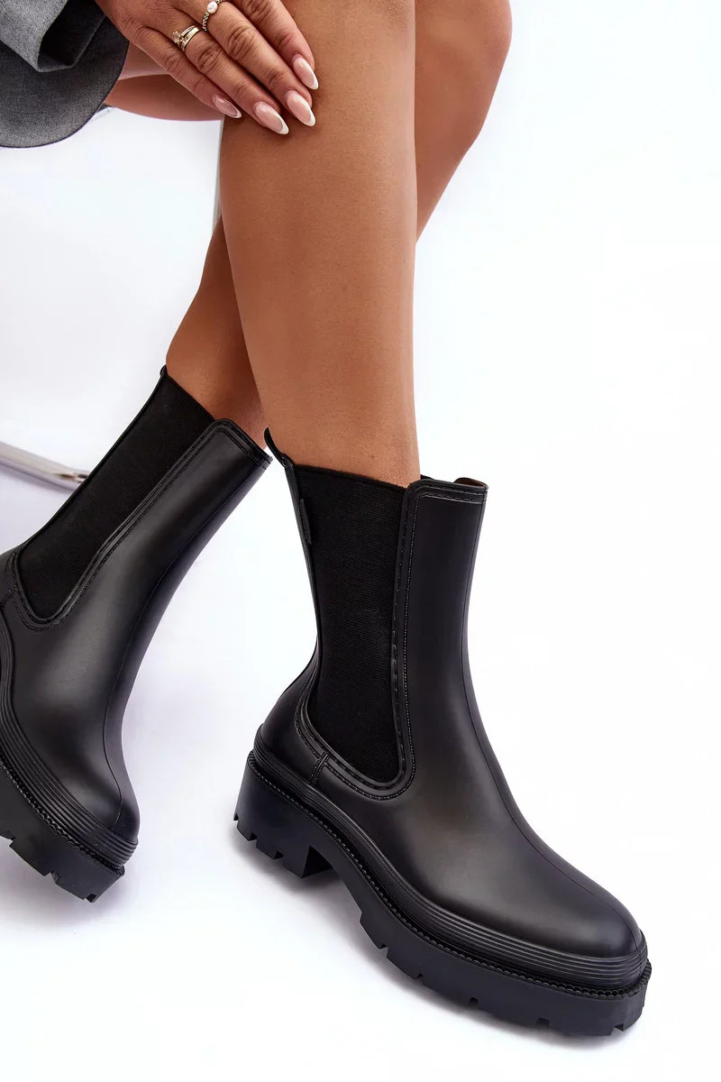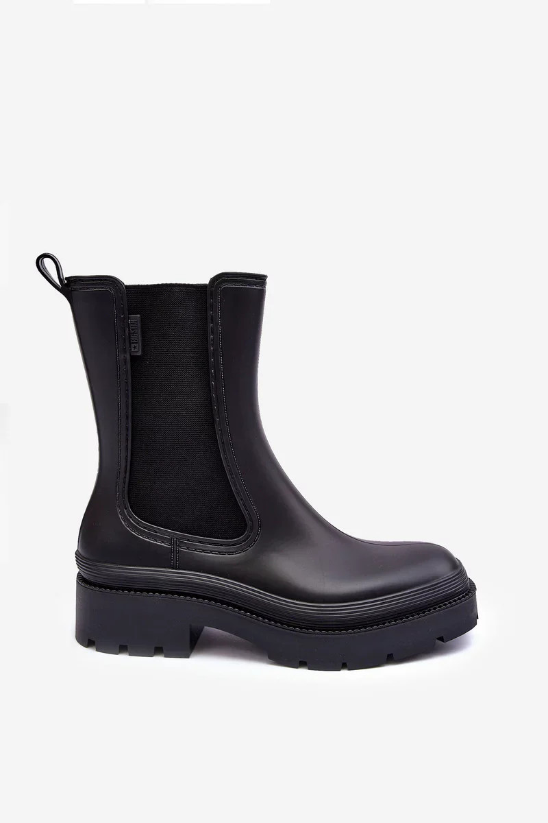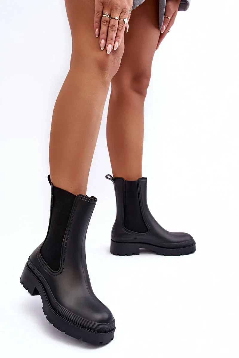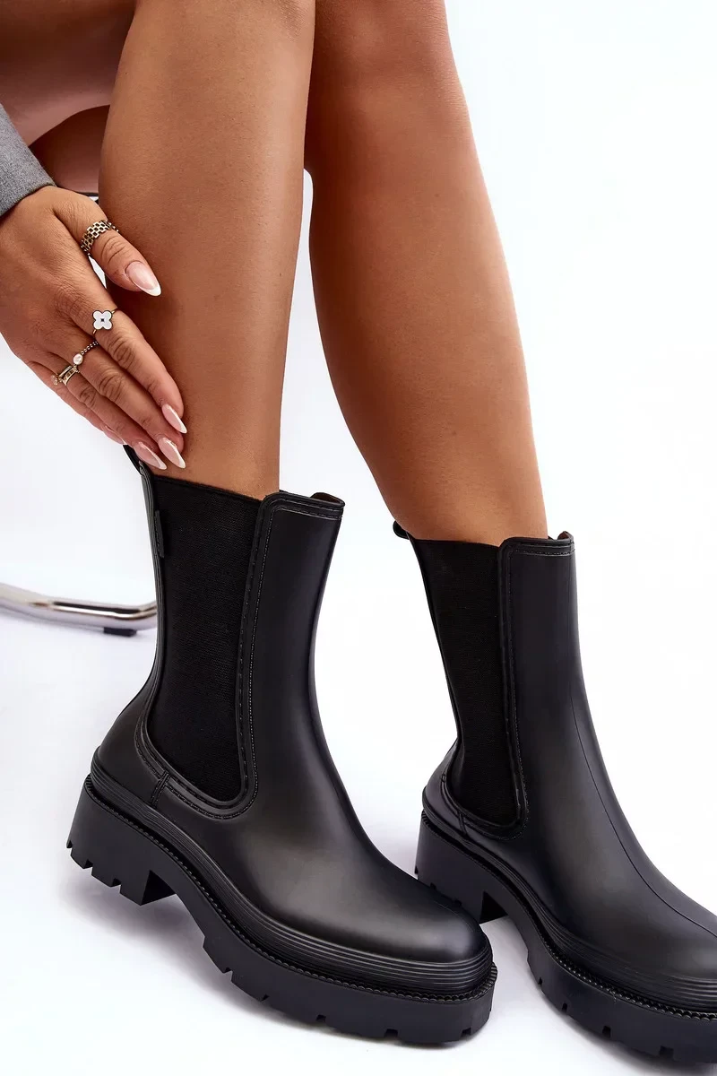 Dámské holínky značky Big Star vyrobené z gumy. Nasazené na plochém podpatku a platformě. Elastické vsadky na svršku. Zaoblené prsty. Tento model se bude skvěle hodit na podzimní, deštivé dny!Při výběru velikosti se řiďte tabulkou velikostí.