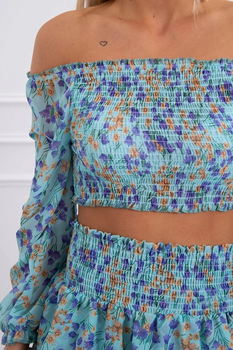 Představujeme vám sadu halenky a sukně. Halenka a květinová sukně. Sukně s volánky. Sada je vyrobena z vysoce kvalitního materiálu. Velikost je univerzální a vyhovuje dámám, které nosí velikost S, M nebo L.
