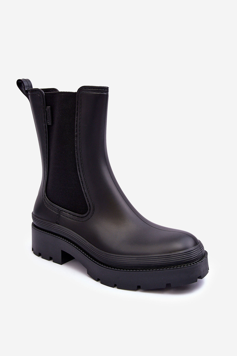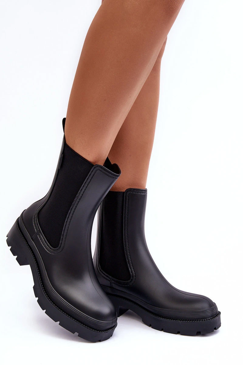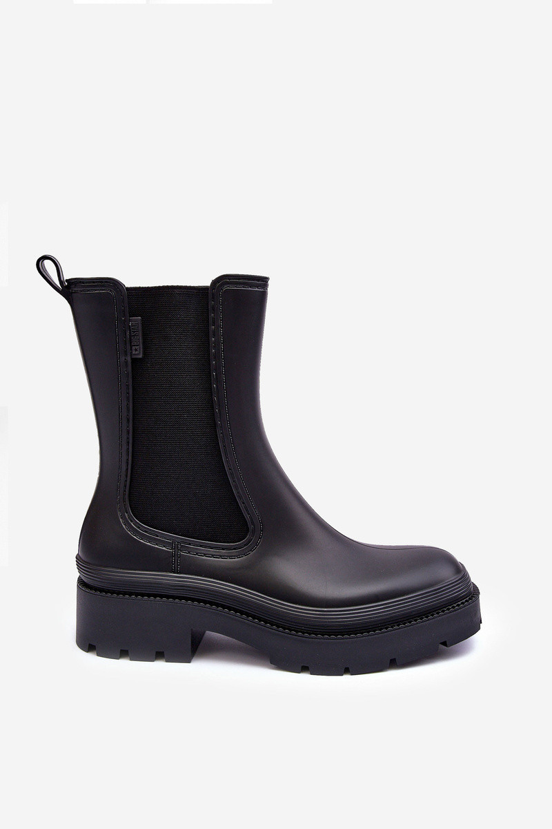 Dámské gumové boty od značky Big Star. Osazené na plochém podpatku a platformě. Na čepici elastické vložky. Špičky zaoblené. Tento model bude ideální na podzimní, deštivé dny! Při výběru velikosti se řiďte tabulkou velikostí.