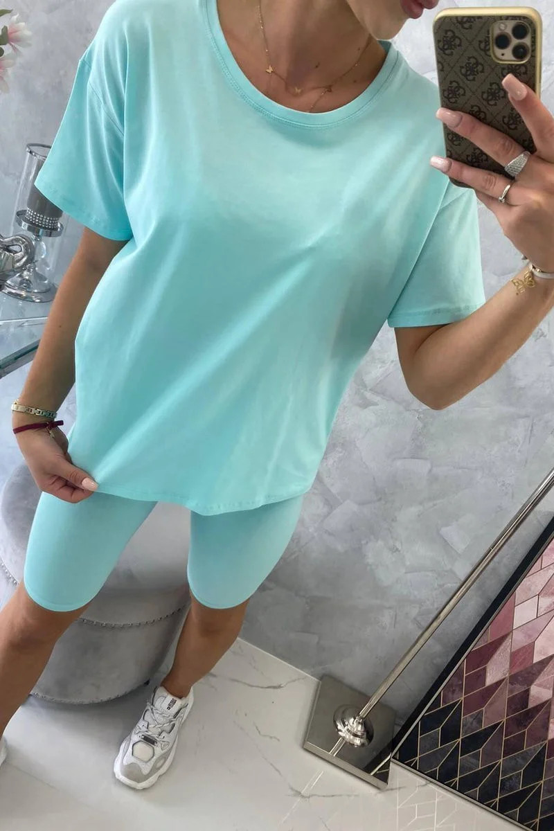 Představujeme vám sadu halenky a kalhot. Hladká halenka bez potisku legíny mají krátkou nohavici. Sada je vyrobena z vysoce kvalitního materiálu. Velikost je univerzální a vyhovuje dámám, které nosí velikost S, M nebo L.