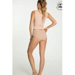 Figi Cotton Mood Maxi to połączenie komfortu, naturalności i kobiecej elegancji. Wykonane z wysokogatunkowej bawełny z dodatkiem elastycznego włókna, doskonale dopasowują się do sylwetki, zapewniając swobodę ruchów przez cały dzień. Bezszwowa konstrukcja gwarantuje gładkie wykończenie – idealne pod dopasowane ubrania. Wysoki stan subtelnie modeluje talię i brzuch, zapewniając uczucie komfortu i pewności siebie. To klasyka, która nigdy nie wychodzi z mody – idealna dla kobiet ceniących wygodę i naturalne materiały.