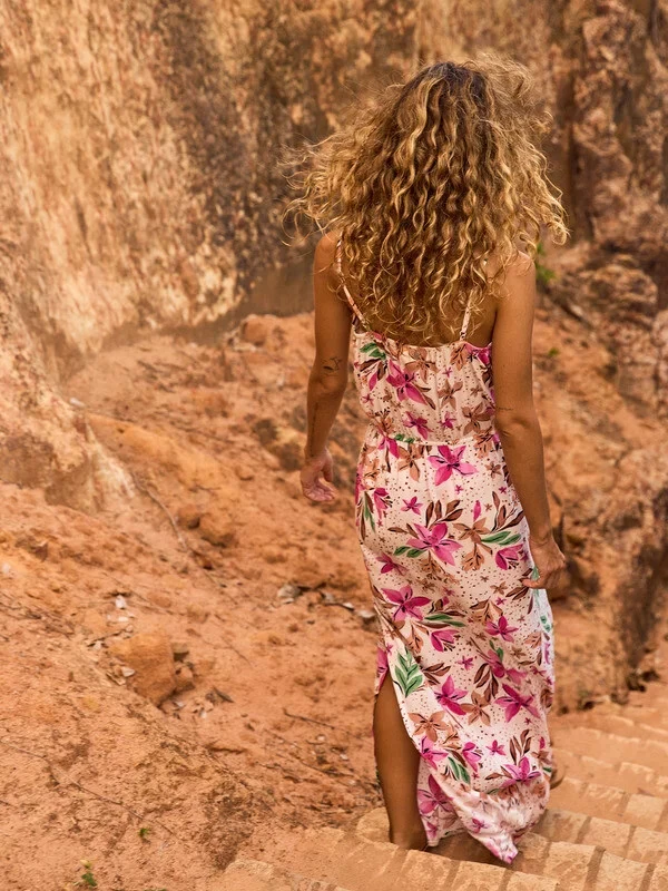 Maxi šaty RAINBOW ROAD jsou vyrobeny z lehké viskózové tkaniny s ekologickým potiskem.