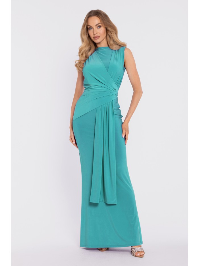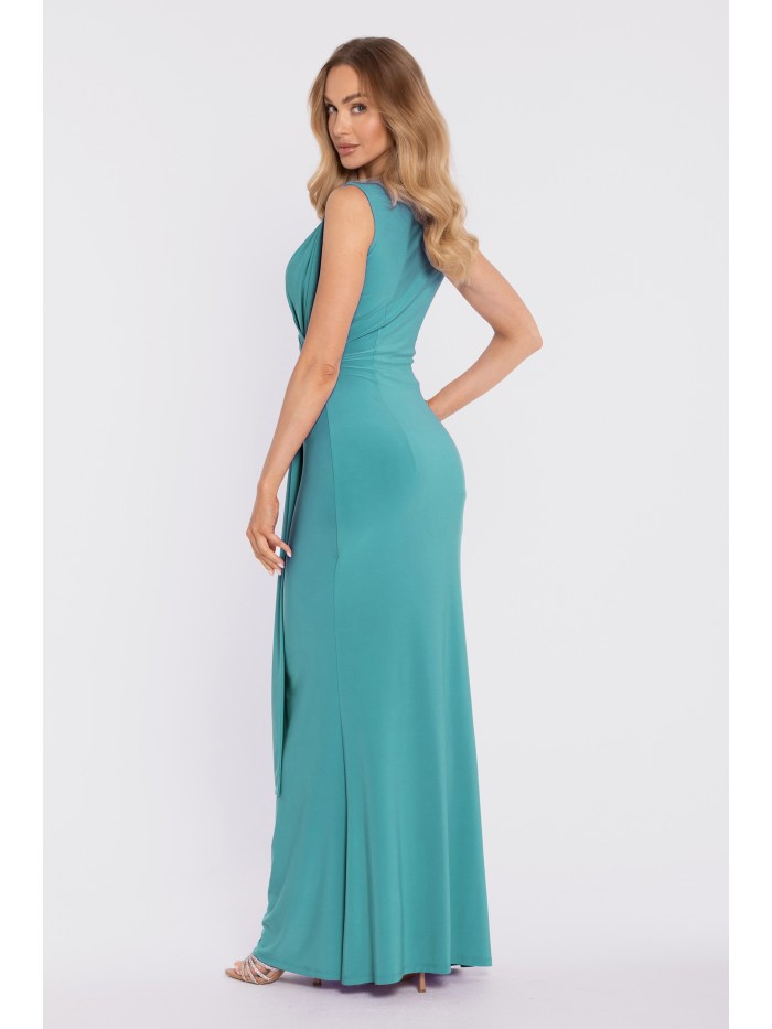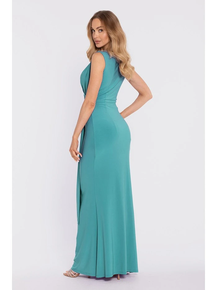 maxi šaty s ohrnutým pasem a panelem tyrkysové model 22040711 - Moe