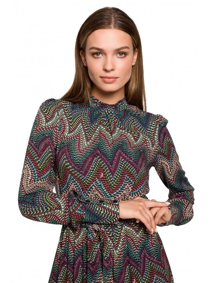 100% viskóza Maximální pohodlí, maximální elegance v podobě maxi šatů s aztéckým potiskem, nařaseným spodním lemem a stojáčkem. Nejlépe se doplňují s vysokými botami. PODROBNOSTI O PRODUKTU: tkaný materiál s potiskem maxi šaty se stojáčkem a nařaseným spodním lemem skrytý zip na zádech dlouhé rukávy s manžetami na knoflíky naše modelka měří 174 cm a nosí velikost S