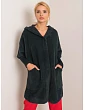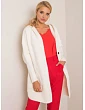 Kobaltový kabát z alpaky s kapucí.