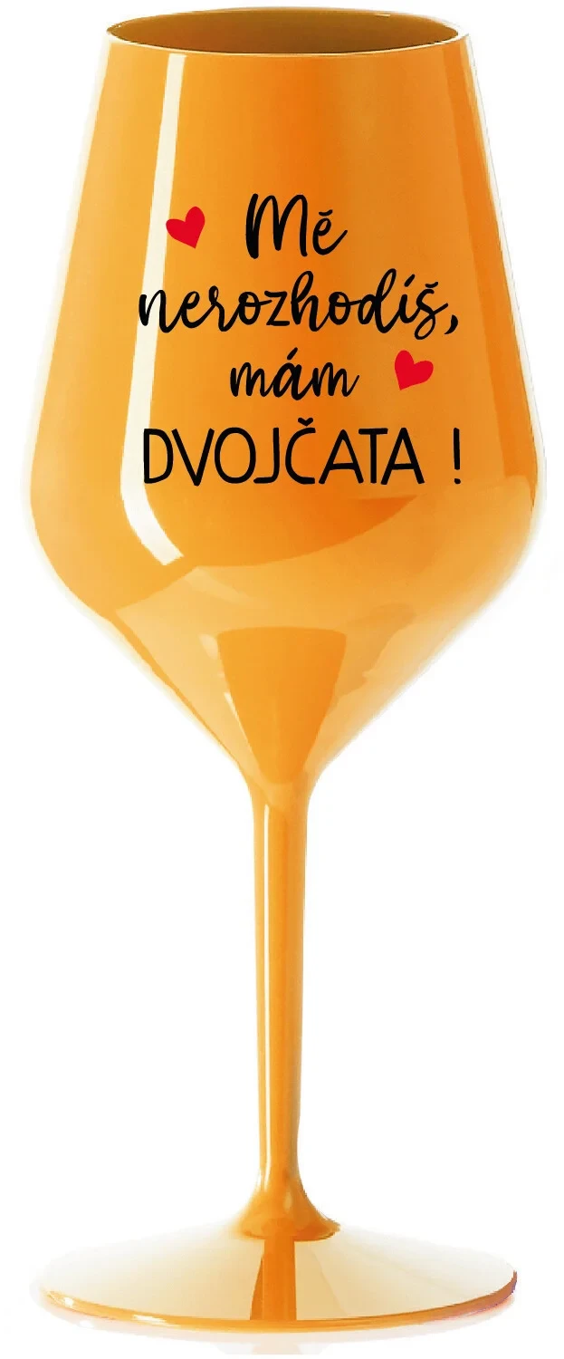 MĚ NEROZHODÍŠ, MÁM DVOJČATA! - oranžová nerozbitná sklenice na víno 470 ml