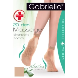 Wyrób pończoszniczy marki Gabriella. Model Medica 20 Massage code 623. Produkt został wykonany z 85% poliamid, 15% elastan. Z zaznaczonymi palcami. Grubość: 15 DEN. Produkt damski. Zalety produktu: skarpetki z efektem masażu.