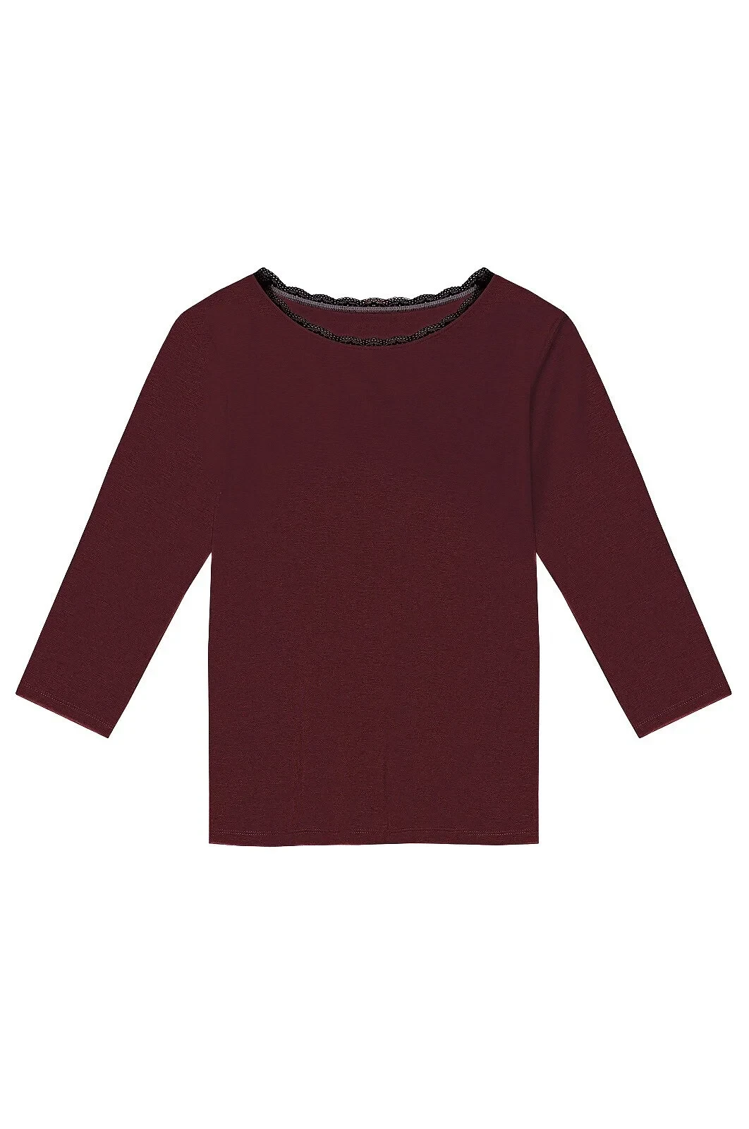 - kulatý výstřih, zdobený krajkou s prolamovaným vzorem