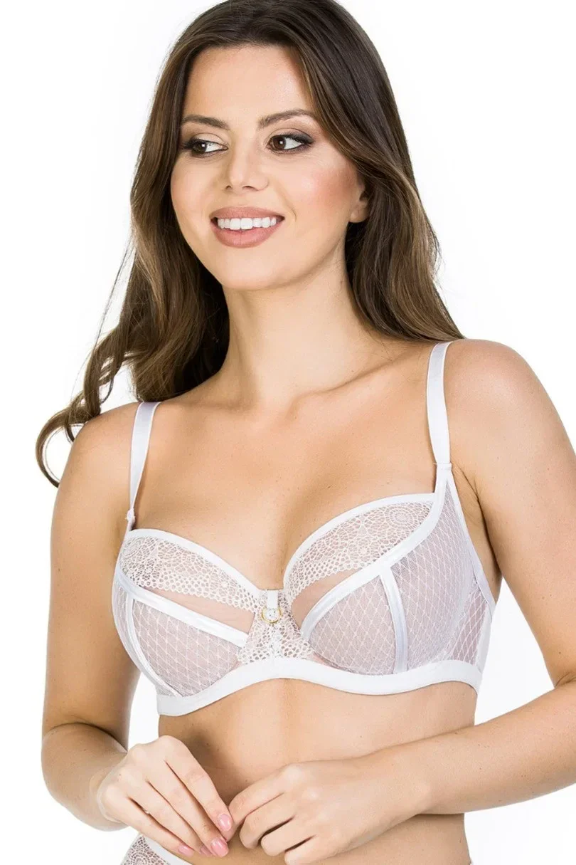 Košíčky modelu je vyrobené z tylu a jejich vnější část pokrývá ve spodní části puntíkovaná síťovina. Vrchní část košíčků pokrývá pěkná výšivka s květinovým motivem. Na švech modelu je prošití z bílé pásky. Obvod modelu tvoří síťovina zpevněná stabilním tylem. Zadní díly modelu jsou ušité z bílého mikrovlákna. Krajka a doplňky jsou vyrobené z velmi kvalitních francouzských materiálů. Ramínka je možné nastavit. Šířka ramínek je přizpůsobená velikosti a rozměru košíčků a obvodu, a proto je podprsenka při nošení pohodlná.