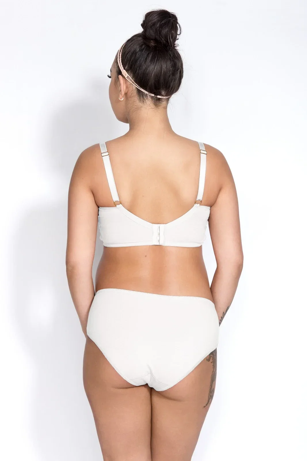 Košíčky jsou bavlněné. Spojení košíčků zdobí srdíčko. Ramínka typu "Quick Click" usnadňují odepínání. Široký obvod podprsenky je bavlněný a zapíná se třemi háčky s trojí možností nastavení délky obvodu.