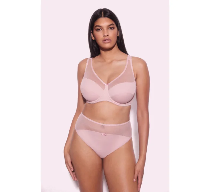 Zobrazit popis > Měkká podprsenka s kosticemi, ideální pro ženy s větším poprsím. Horní část košíčků je z průsvitné síťky, spodní část je z hladkého mikrovlákna. Vnitřek je podšitý bavlnou. Ramínka jsou neodepínací.