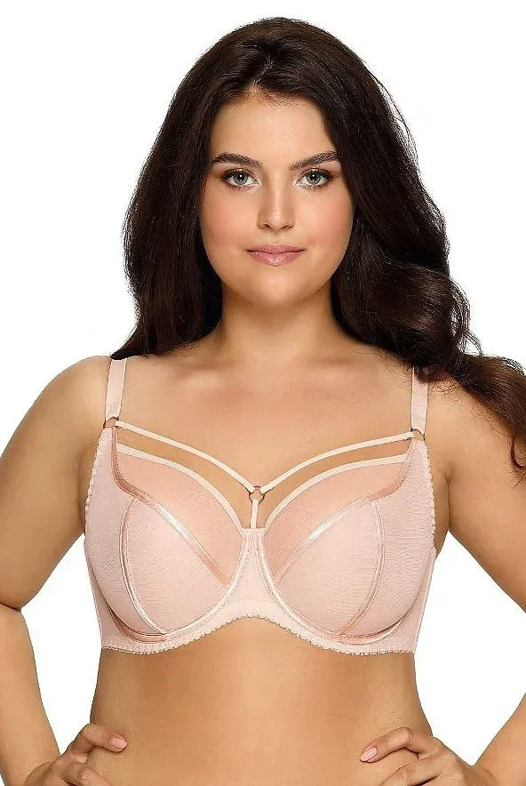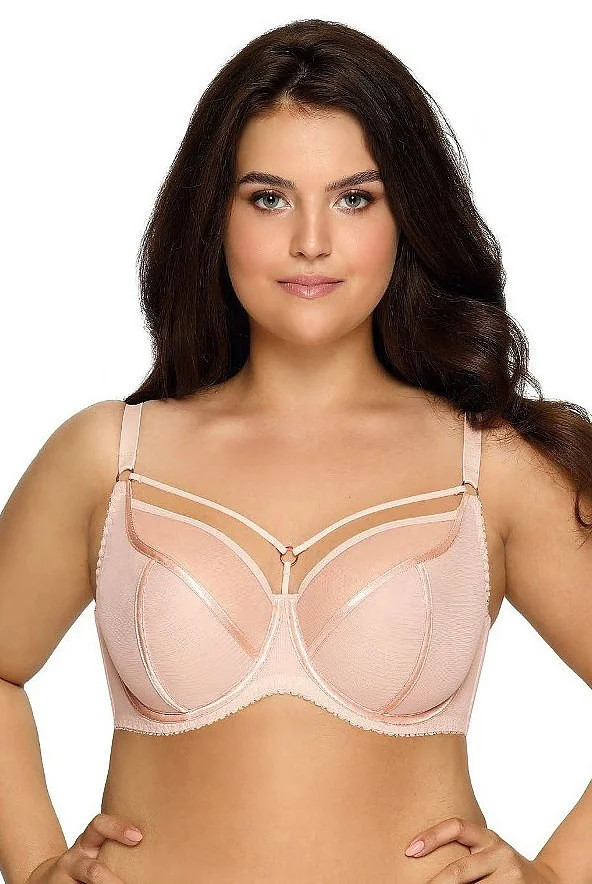 Podprsenka je vyrobená ze dvojité vrstvy síťoviny s lesklým prošitím. Vrchní část košíčků tvoří jemná síťovina. Nad košíčky jsou ozdobné pružné pásky. Ramínka je možné nastavit, ale nelze je odepnout.