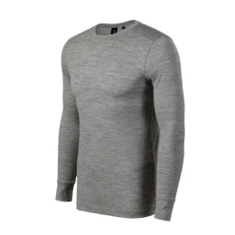 extra jemná merino vlna nemačkavý a vysoce prodyšný materiál termoregulační a antibakteriální vlastnosti schopnost odvodu vlhkosti a absorpce zápachu přiléhavý střih s bočními švy úzký lem průkrčníku z vrchového materiálu vnitřní část průkrčníku začištěna páskou z vrchového materiálu zpevnění ramenních švů páskou dlouhé rukávy s manžetou doporučeno sušit ve vodorovné poloze