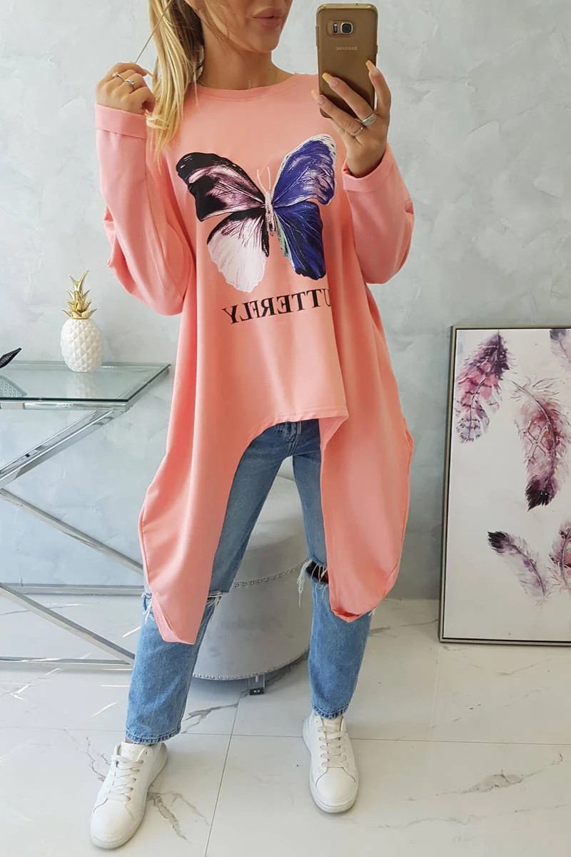 Představujeme vám módní halenku. Halenka s potiskem motýla. Halenka s delšími boky. Halenka je vyrobena z vysoce kvalitního materiálu. Velikost je univerzální a vyhovuje dámám, které nosí velikost M, L nebo XL.