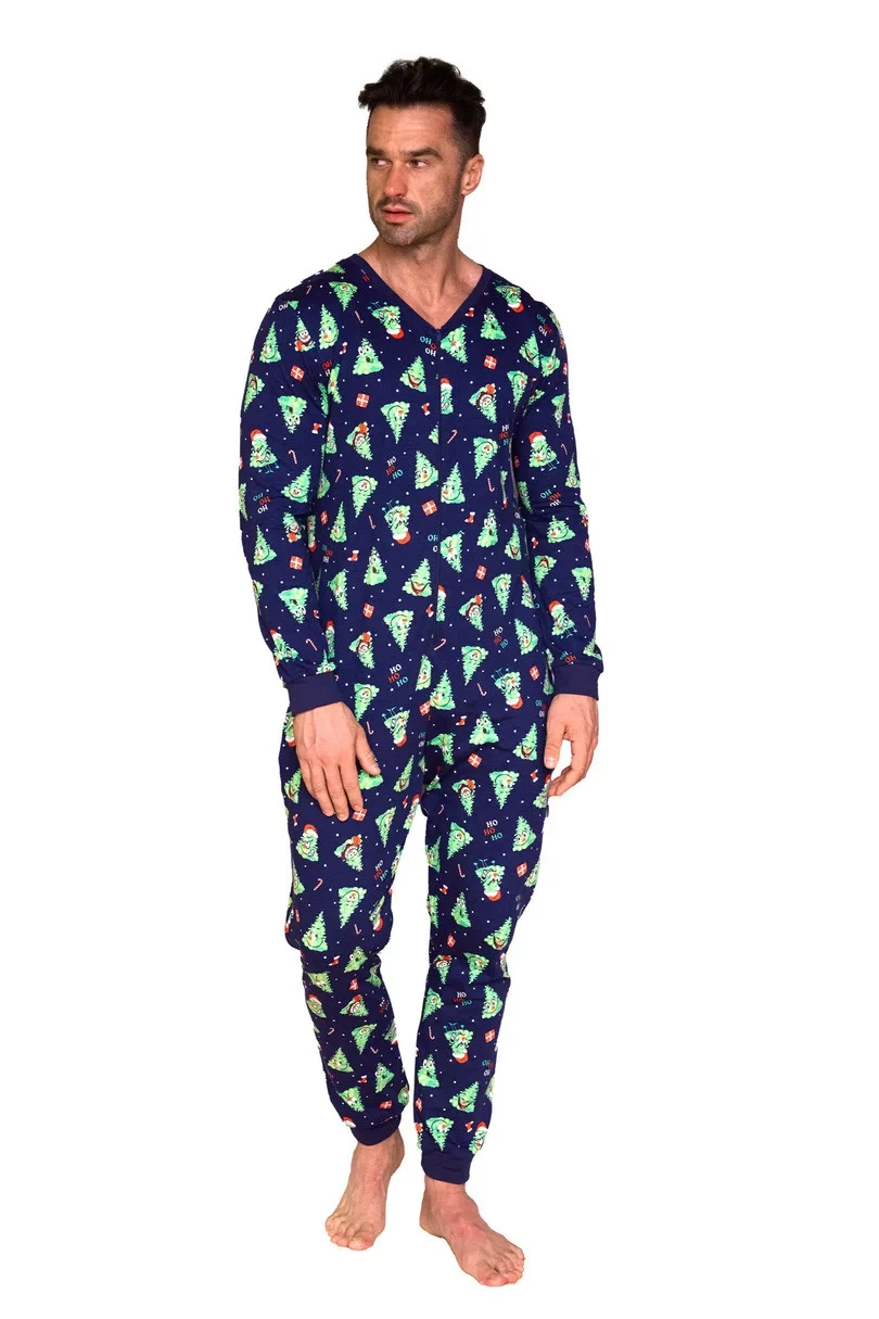 Pánský overal z kvalitní bavlny se slavnostním vzorem, zapínání na zip, žebrované rukávy a nohavice, praktické kapsy na úrovni boků.