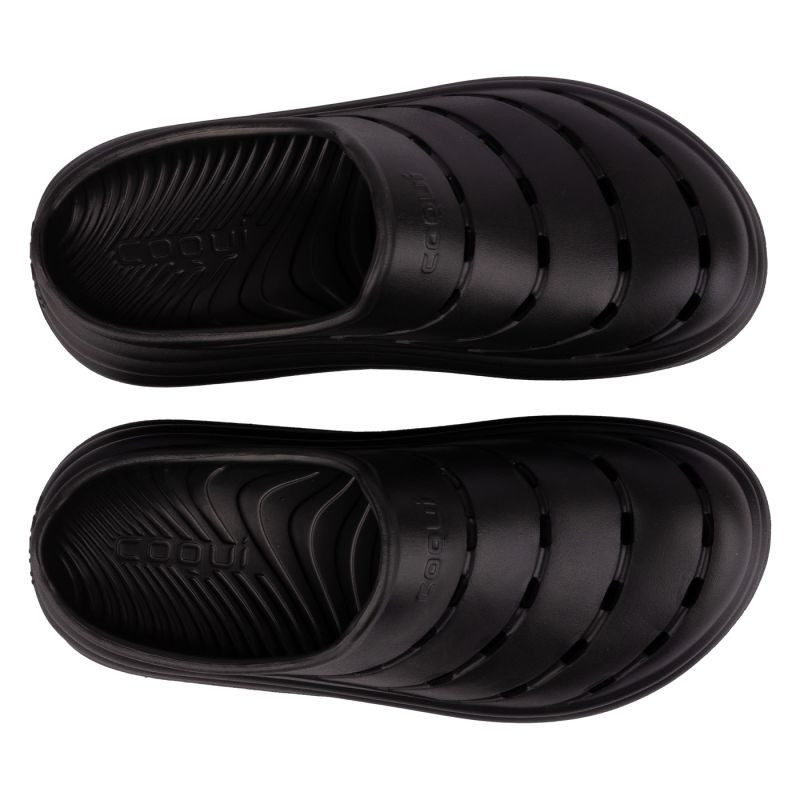 Materiał CoquiAir (najwyższa klasa materiałów EVA) Antybakteryjna powierzchnia Antypoślizgowa i niebrudząca podeszwa Lekko podwyższona pięta Wentylacyjne otwory na podbiciu Możliwość personalizacji za pomocą przypinek Amuletz
