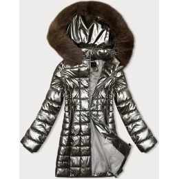 Metalická dámská bunda ve barvě zašlého zlata s kapucí J Style (16M9120-403)