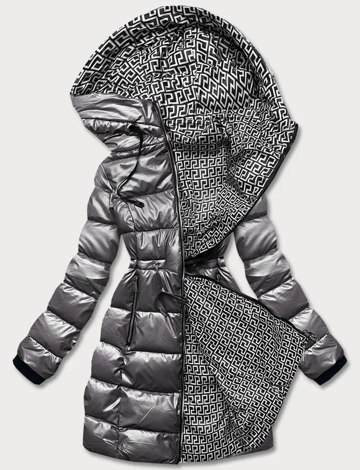METALICZNA KURTKA DWUSTRONNA DAMSKA SZARA (B8070-70)