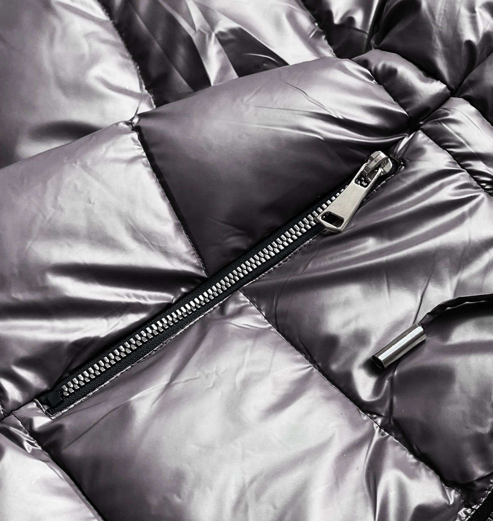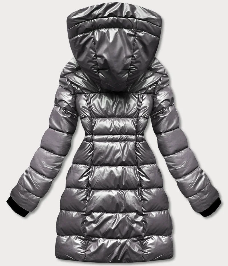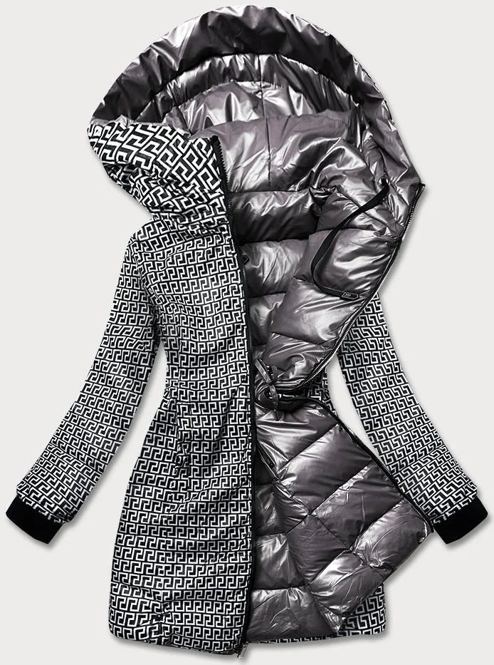 METALICZNA KURTKA DWUSTRONNA DAMSKA SZARA (R8070)