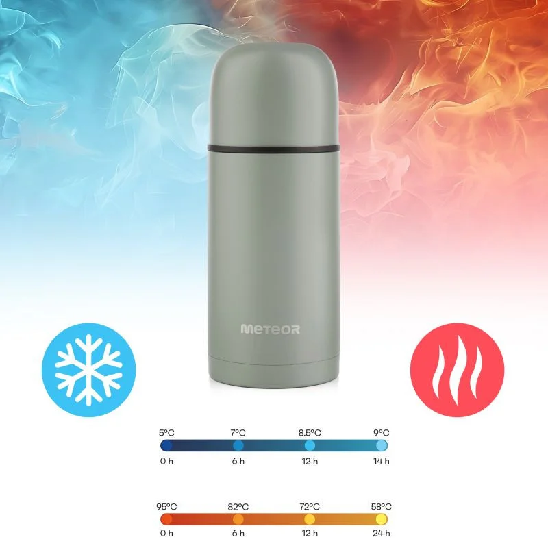 Všestranné využití - v termosce budete uchovávat nejen horké tekutiny, jako je horká voda užitečná pro přípravu pokrmů, ale budete v ní také přenášet kávu nebo čaj, což je nezbytné zejména při delším pobytu mimo domov. Termosku stačí před naplněním řádně připravit - několik minut před vložením horkého nápoje nalijte vařící vodu nebo před vložením studené tekutiny velmi studenou vodu, abyste zvýšili její tepelné vlastnosti. S termoskou Meteor si budete moci vychutnat teplý nápoj kdykoli!