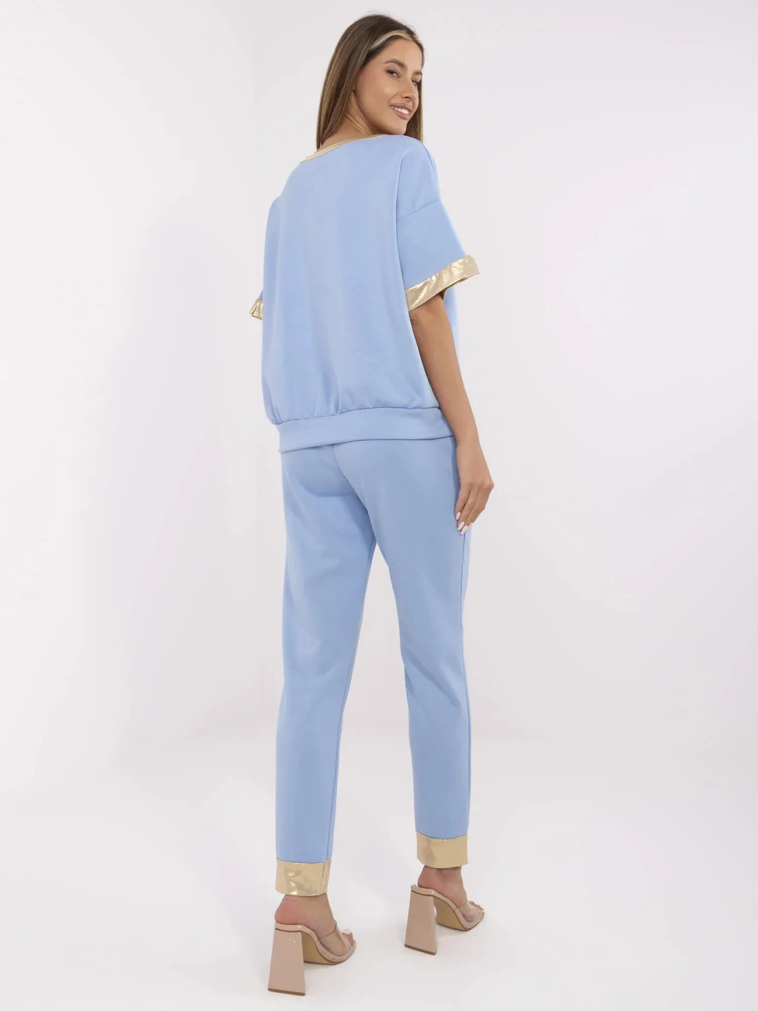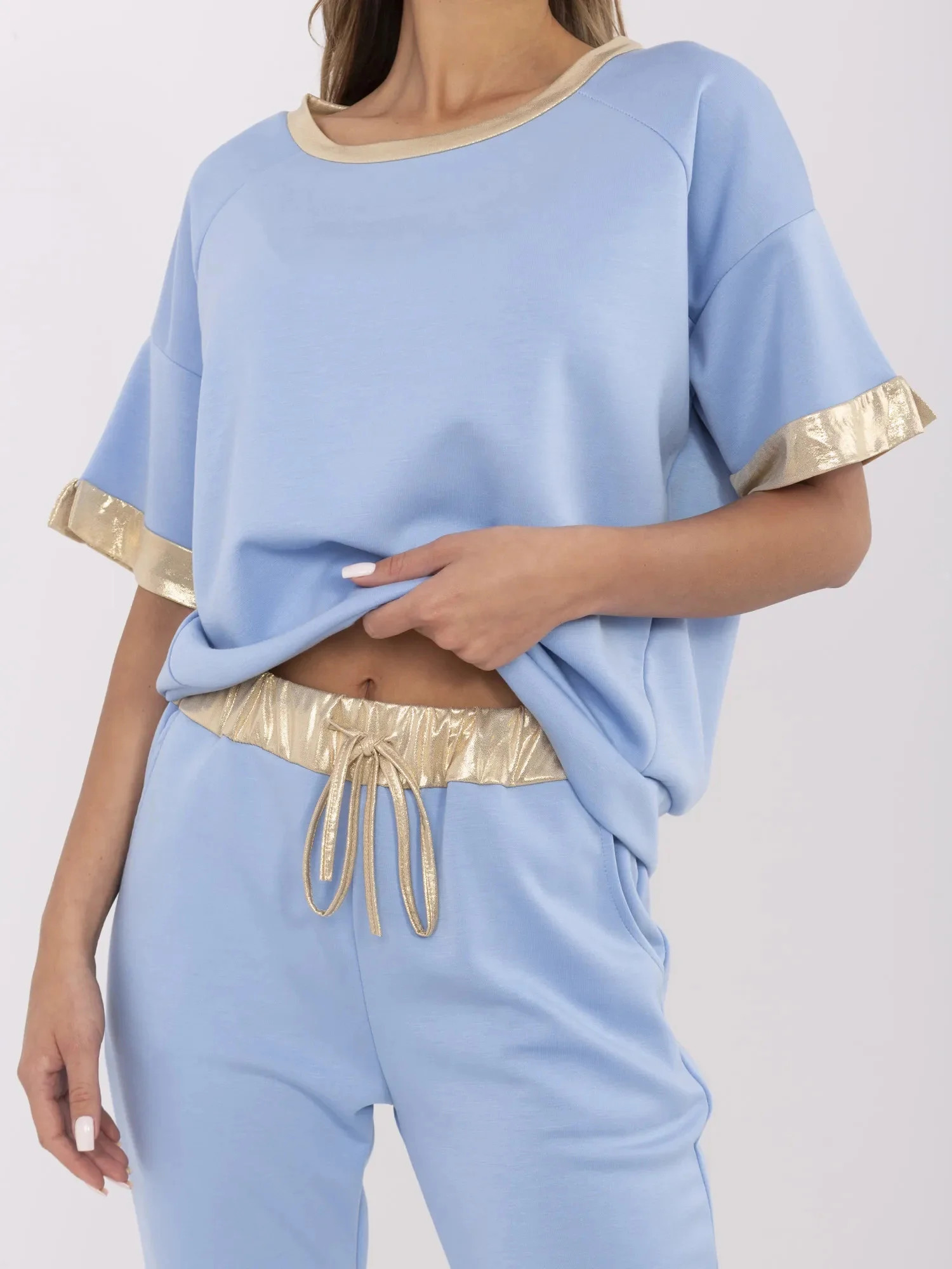 Wymiary bluzy w rozmiarze one size mierzone na płasko: szerokość pod pachami - 62 cm długość rękawa - 18 cm (od szwu), długość całkowita - 58 cm, szerokość w biodrach - 53 cm.