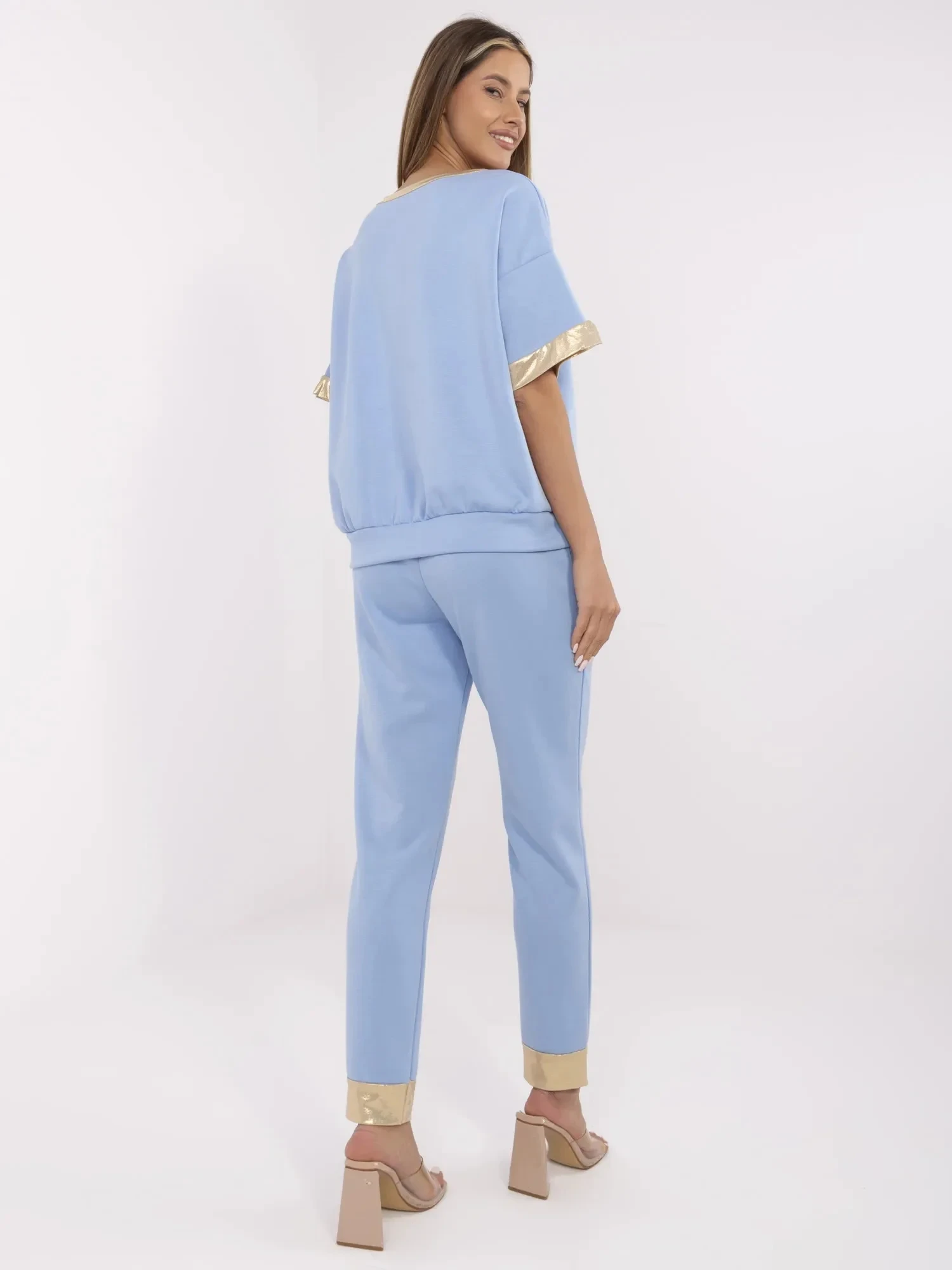 Wymiary spodni w rozmiarze one size szerokość w pasie - 34 cm (na płasko), szerokość w pasie - 70 cm (po rozciągnięciu), wysokość stanu - 31 cm, szerokość w biodrach - 50 cm, długość całkowita - 99 cm.