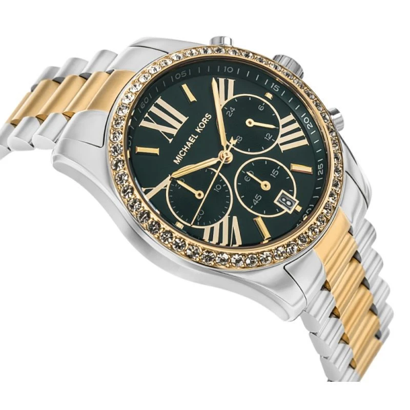 Dámské hodinky Michael Kors Lexington MK7303 jsou typickým příkladem luxusu a nadčasového stylu. Hodinky v klasických stříbrných a zlatých tónech zaujmou na první pohled svým jemným leskem a elegantním provedením. Kulaté pouzdro a odpovídající náramek z nerezové oceli tvoří celek připomínající šperk, který dodá každému outfitu punc noblesy. Zelený ciferník s indexy a funkcí chronografu kombinuje styl a praktičnost, zatímco ozdobný rámeček kolem ciferníku dodává hodinkám jedinečný nádech. Hodinky Michael Kors Lexington MK7303 pohání přesný quartzový strojek, který zaručuje spolehlivý chod každý den. Jsou ideální volbou pro ženy, které rády září na úrovni - jsou elegantní, sofistikované a vždy módní.