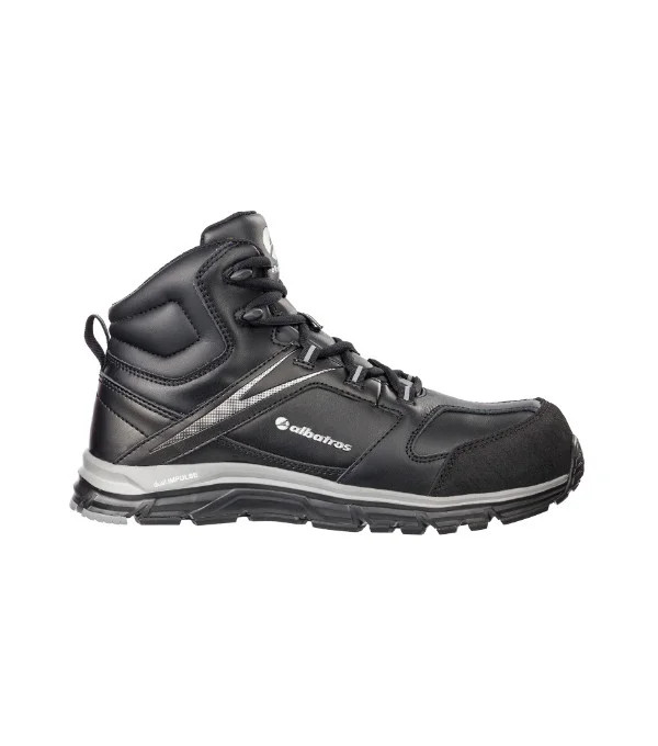 bezpečnostní obuv S3 ochranná kompozitní kaple - sklolaminátová protipropichová flexibilní stélka - FAP® anatomická vložka comfit® AIR footbed SRC - protiskluzová podešev - pryž/mezipodešev IMPULSE.FOAM® E - absorpce energie v oblasti paty FO - odolná palivovému oleji HRO - odolná kontaktnímu teplu do 300 °C WRU - odolnost proti průniku vody ESD - odvádí elektrostatický náboj A - antistatická bez kovových částí certifikováno DGUV 112-191 produkt se již do budoucna nebude naskladňovat