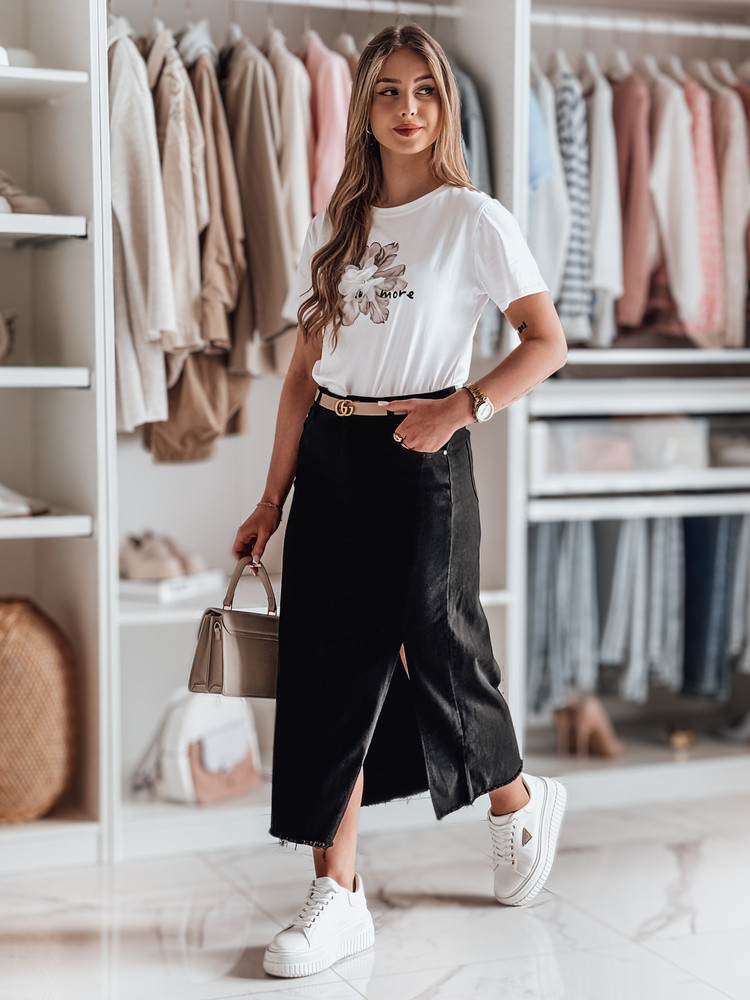 Moderní midi sukně s jedinečným střihem. Vysoký pas krásně zvýrazňuje pas, zatímco rozparek na boku dodává jemnou smyslnost a volnost pohybu. Roztřepený povrch jí dodává lehce syrový, streetwearový nádech. Ozdobné kapsy zajišťují pohodlí. Ideální pro ležérní i elegantní outfity.