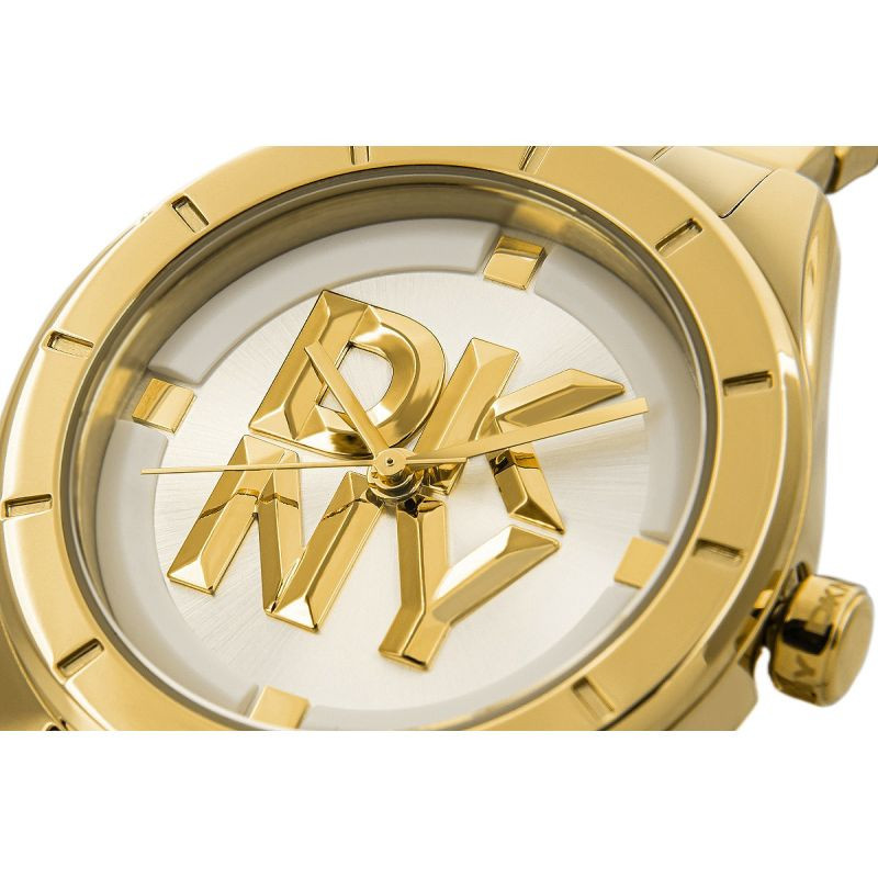 Zegarek DKNY to odważny manifest luksusu, który przyciąga wzrok i podkreśla wyjątkowy styl swojej właścicielki. Złota koperta przyciąga wzrok swoim wyrafinowanym blaskiem, a trójwymiarowe logo DKNY na tarczy dodaje mu nowoczesnej głębi i unikalnego wyrazu. Srebrno/biała tarcza z lustrzanym efektem kontrastuje ze złotymi detalami, tworząc wyjątkowy efekt świetlny, który podkreśla prestiżowy charakter zegarka.