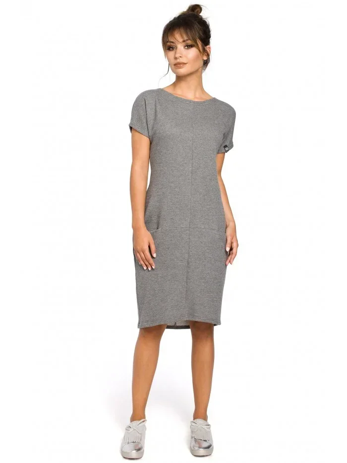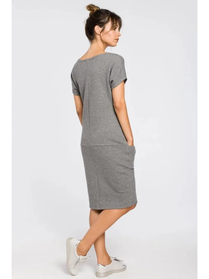 Midi šaty s kapsami ve šedé model 18001684 - BeWear
