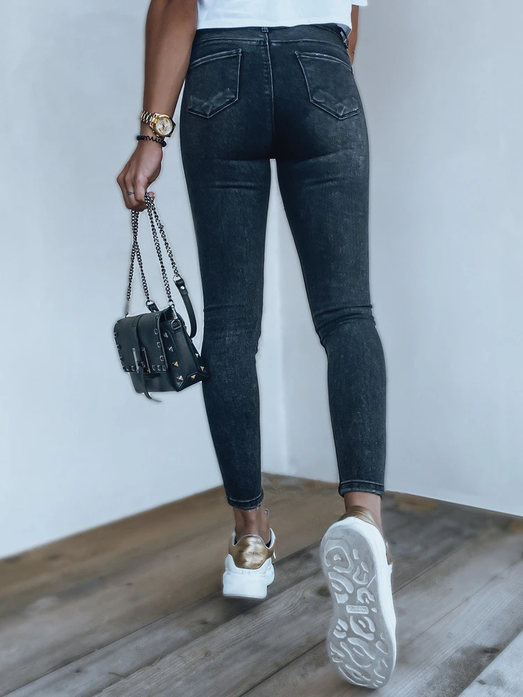 Klasické úzké džíny s vysokým pasem, zapínáním na knoflík a zip, střihem, který zvýrazní vaše křivky, a elastickým materiálem pro pohodlné nošení.