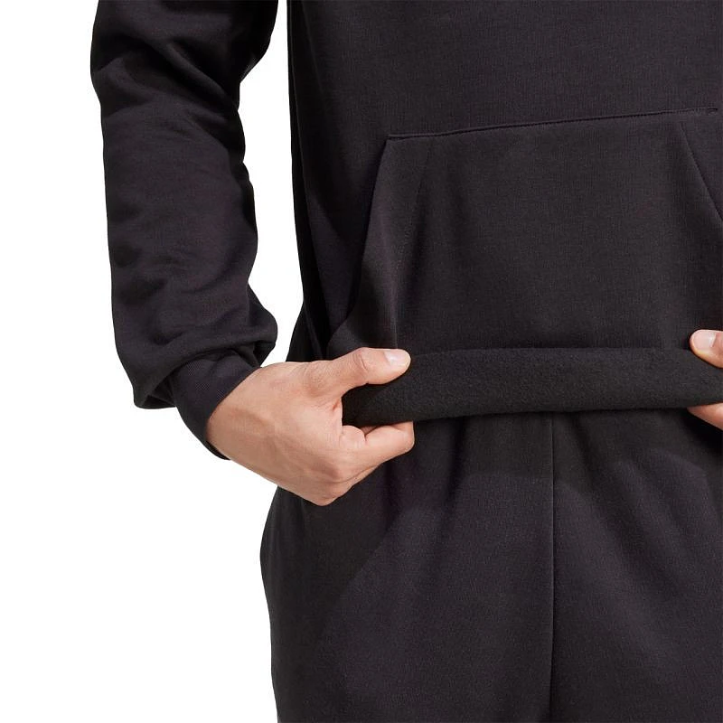 Tato pánská mikina adidas je ideální pro každodenní nošení. Na dotek příjemná tkanina z bavlny, polyesterových vláken a viskózy. Fleecová podšívka měkce obepíná pokožku a hřeje. Standardní střih. Nastavitelná kapuce. Elastické manžety na rukávech a spodním lemu. Přední kapsa. Materiál: 55 % bavlna, 36 % polyester, 9 % viskóza.