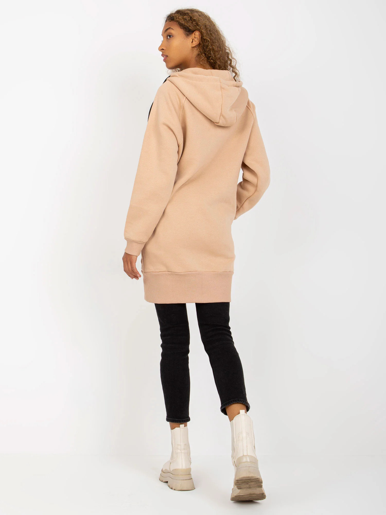 Rozměry mikiny ve velikosti S/M měřené na plocho: šířka v podpaží - 55 cm, délka rukávu - 59 cm, celková délka - 87 cm.