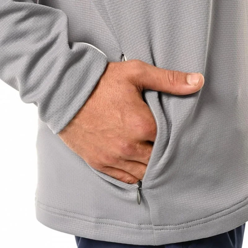 texturovaná technická fleecová tkanina Zúžený hokejový střih Zip YKK ve středu přední části a kapsy všité do bočních švů Smyčka na zavěšení Kontrastní bílé lemy Loga na zadní straně krku a přední straně ramene Tkaný štítek s logem ve spodní části.