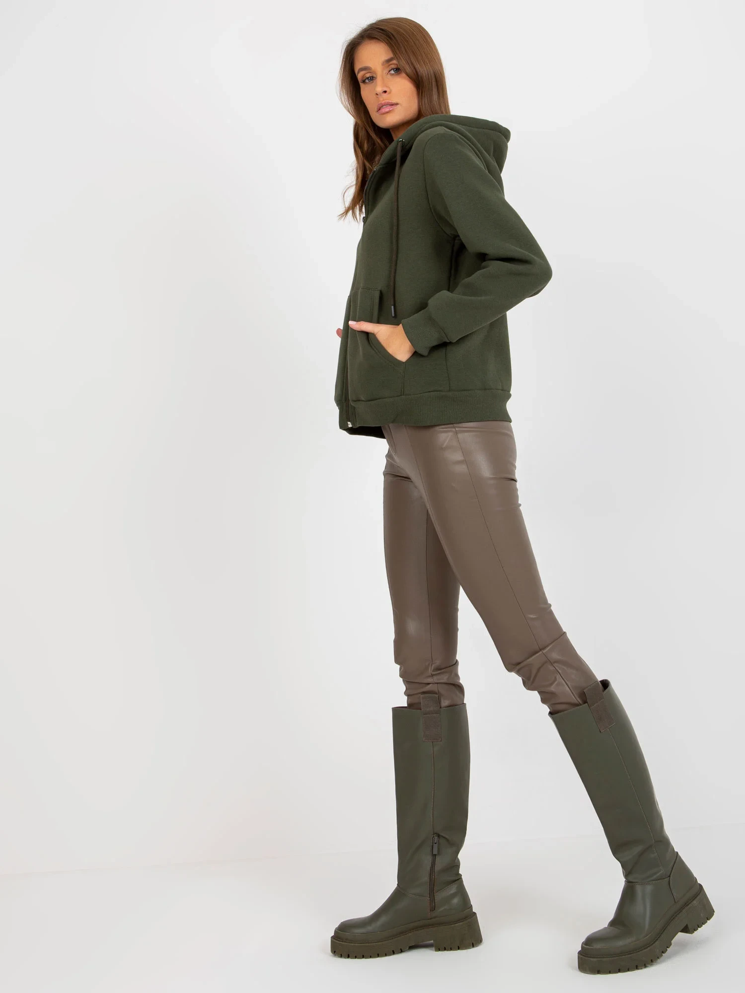 Modelka má na sobě velikost S/M. Rozměry modelky: výška 178 cm, prsa 89 cm, pas 65 cm, boky 95 cm.
