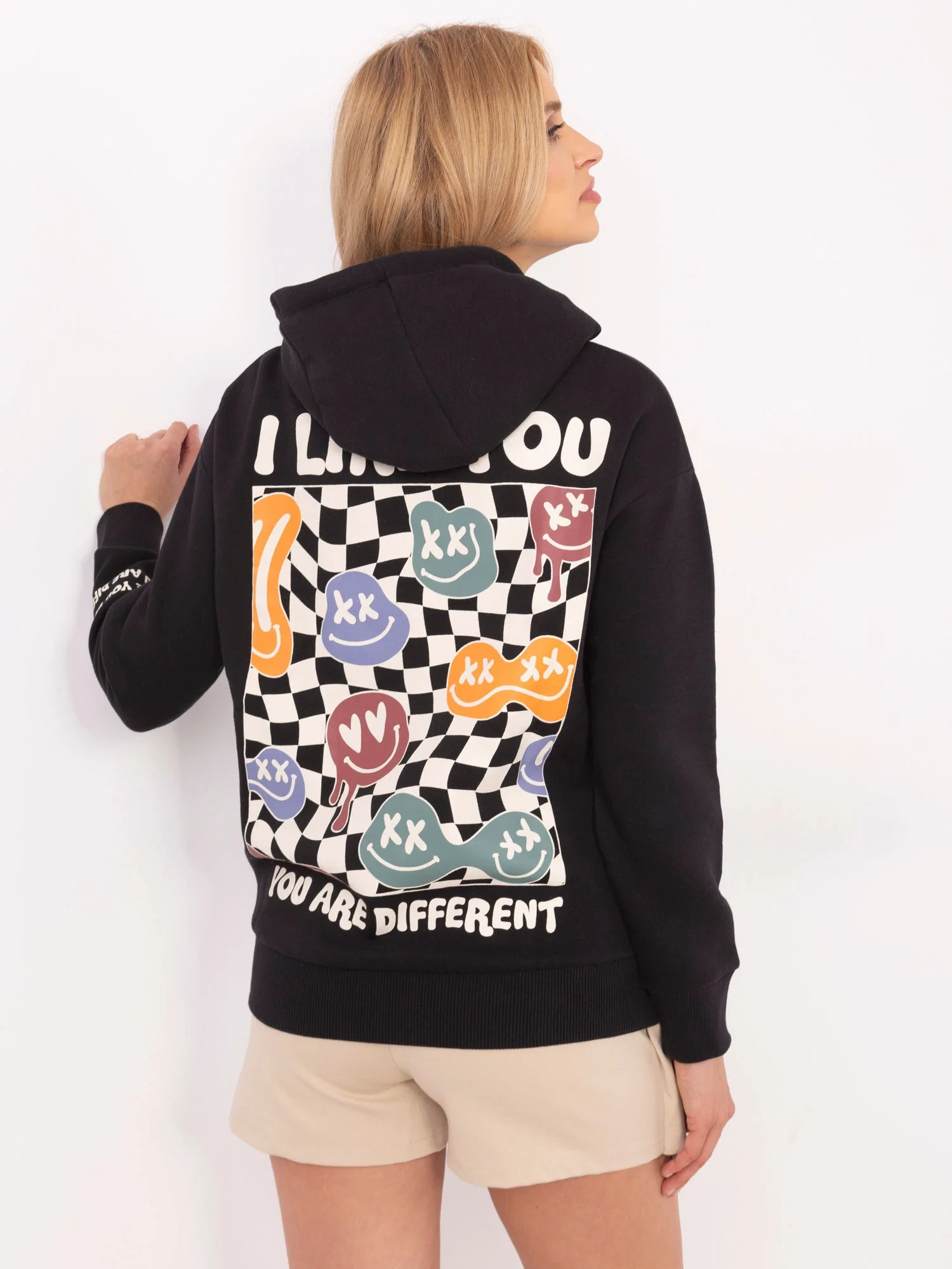Rozměry mikiny velikosti S měřené na plocho: šířka v podpaží - 57 cm, celková délka - 64 cm, délka rukávu - 54 cm (od švu).
