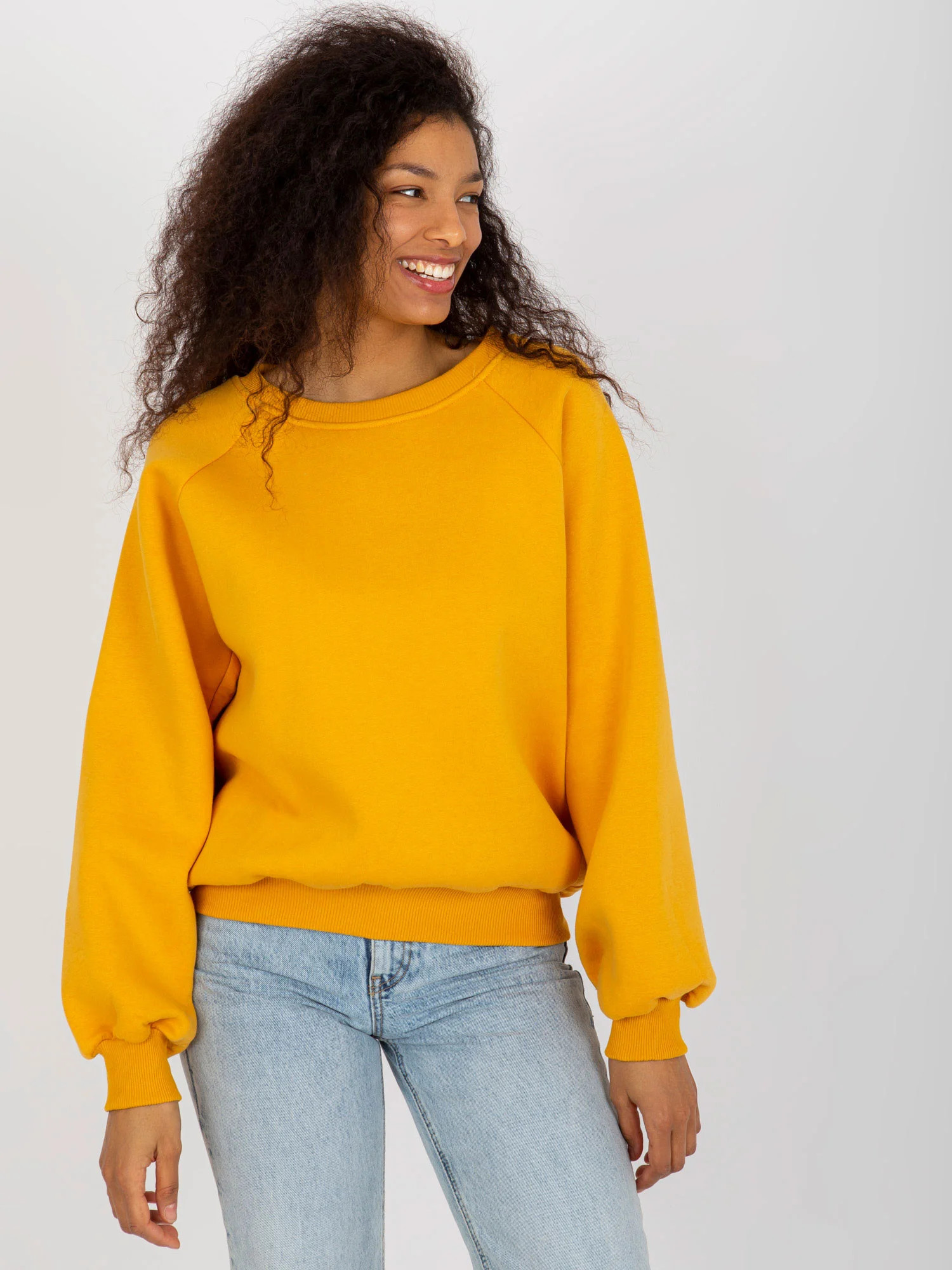 Tmavě žlutá mikina basic s kulatým výstřihem .