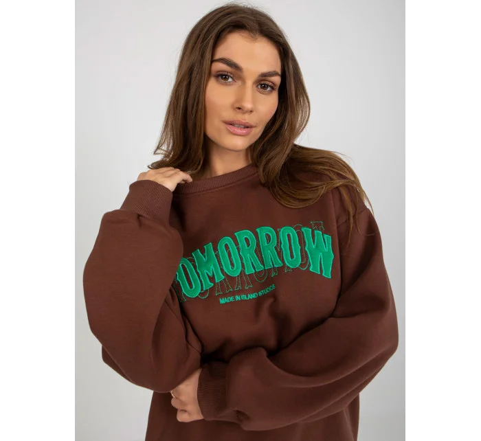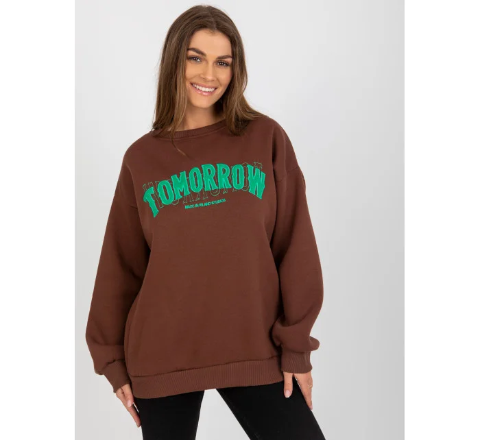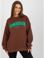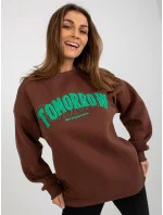 Tmavě hnědá dámská mikina s kapucí a nápisem .