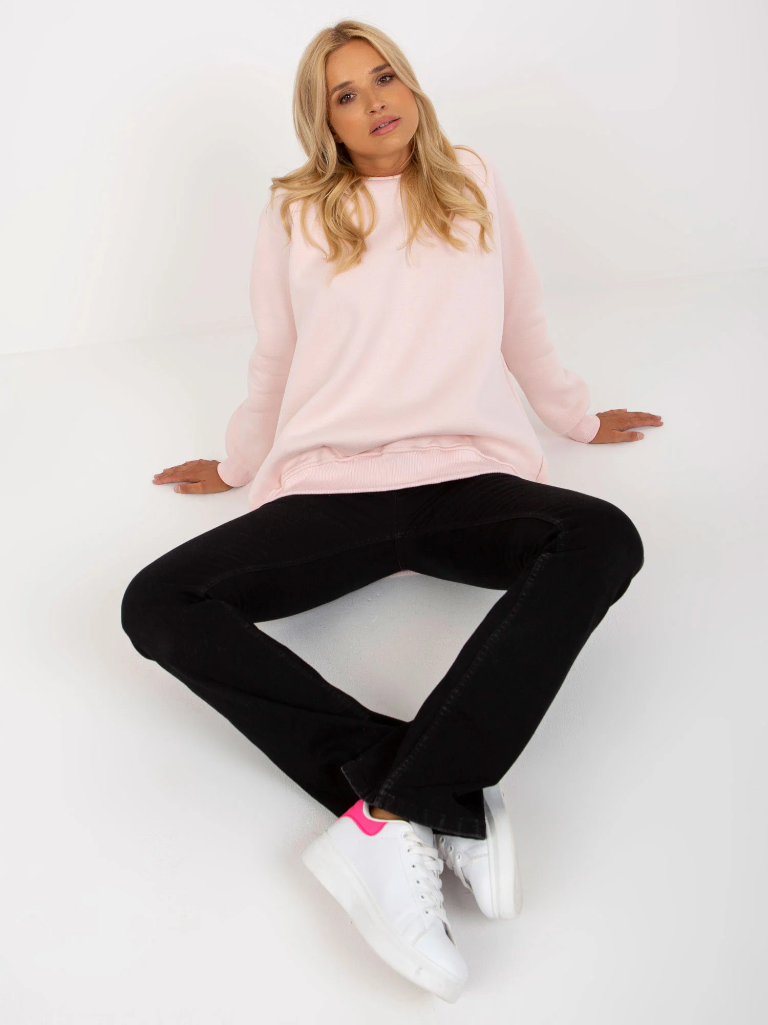 Světle růžová mikina basic bez kapuce .