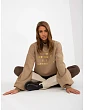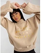 Khaki mikina s potiskem a širokými rukávy .