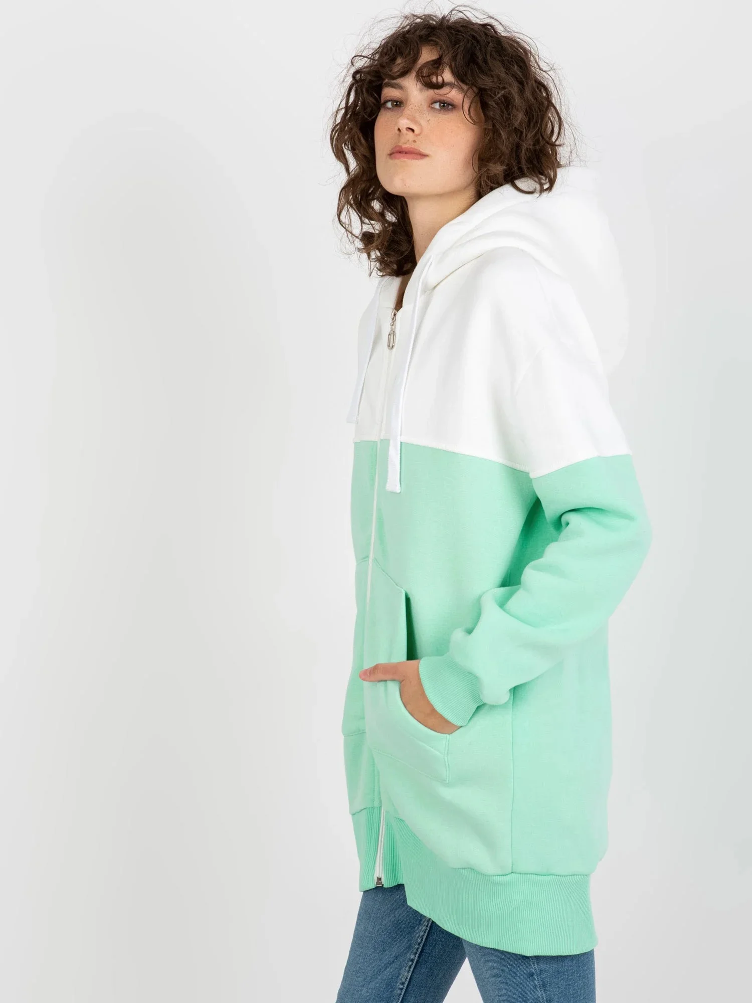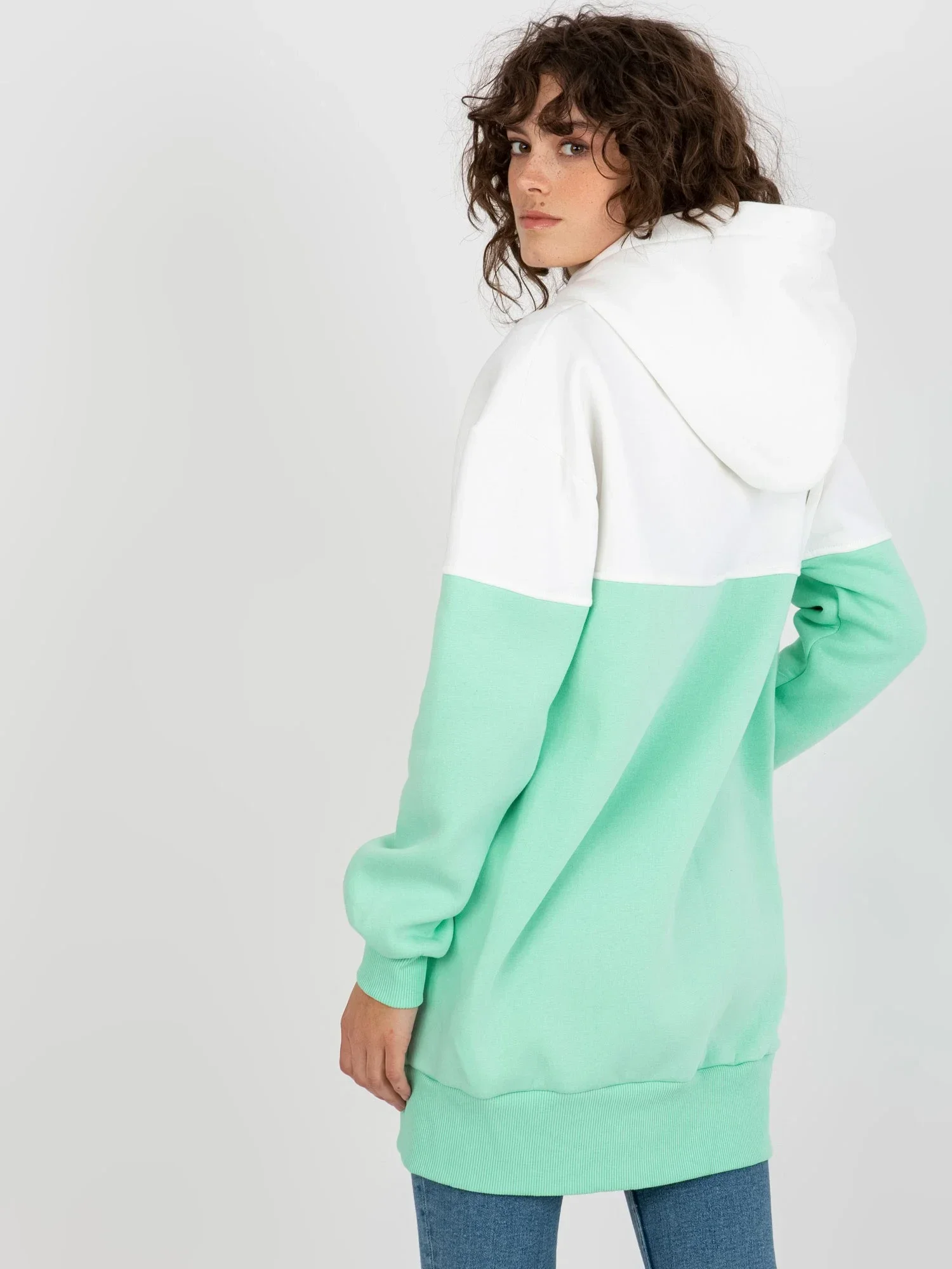 Ecru-mint mikina dlouhá basic s kapucí.
