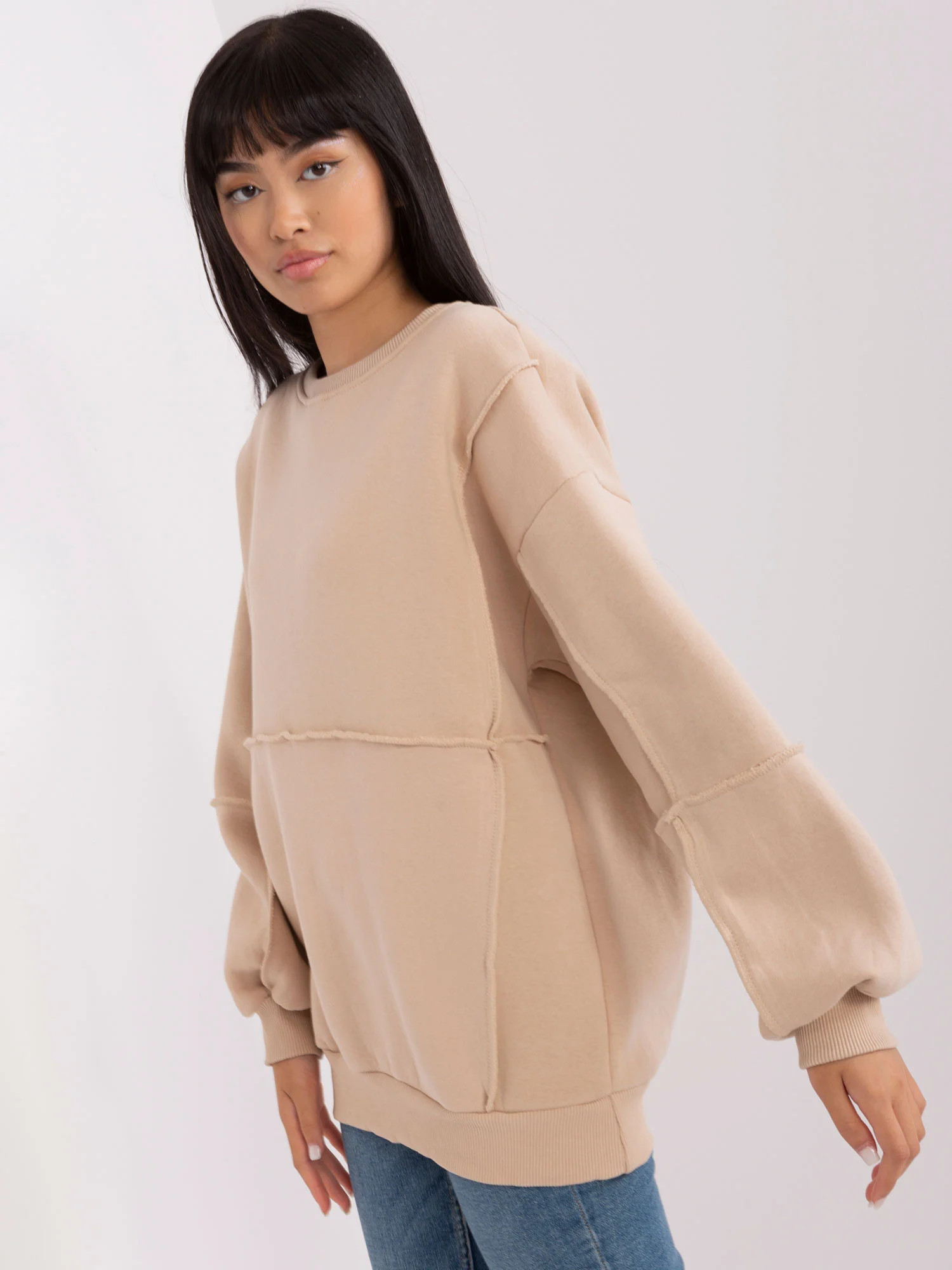 Béžová oversize mikina bez kapuce .