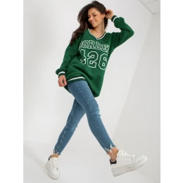 Tmavě zelená dlouhá mikina s výstřihem do V .